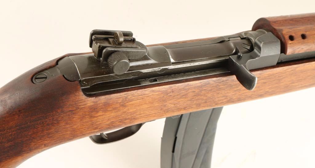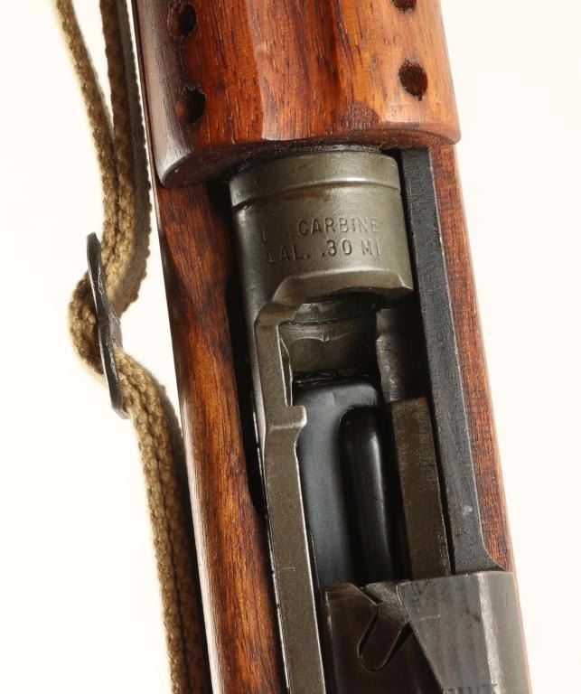 SN: 1775976 Rebuilt U.S. Military contracted semi-automatic rifle chambered in .30 Carbine, circa 1942/1943. The rarest on all M1 Carbines with only an approximate 50,000 produced. Features a parkerized finish, 18" Underwood barrel dated 6-43, winged front sight, adjustable rear aperture sight, wide barrel band with bayonet lug, canvas sling, oiler, rotary style safety, 30 round magazine, smooth trigger, flat bolt, and a later wood shoulder stock with no visible markings. Rifle retains 70% parkerized finish with wear from use and few scratches on barrel. Action is smooth, bore is pristine, and wood stocks are near fine with few dings. Condition is very good++ as vintage. ***C&R Firearm*** ***Modern Firearm***