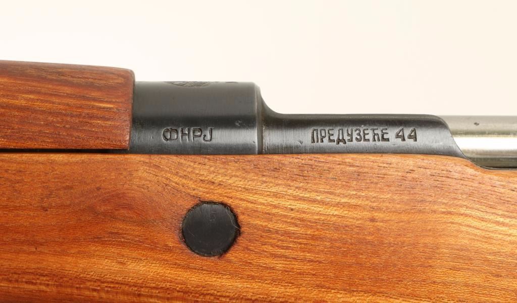 Blue bolt-action Yugoslavian M48 military rifle with a 23-1/4" barrel, cleaning rod, CAI import stamp, leather sling, matching serial numbers, intermediate length receiver, wood stock, leather action cover and stainless cupped butt plate, Bluing is almost pristine with a few rubs and light intermittent edge wear. The bore is bright with sharp rifling. Action works well with packing grease present in some spots. Wood stock is in wonderful condition with only a few mars and a slightly oily finish. Condition is excellent. *Modern Firearm*