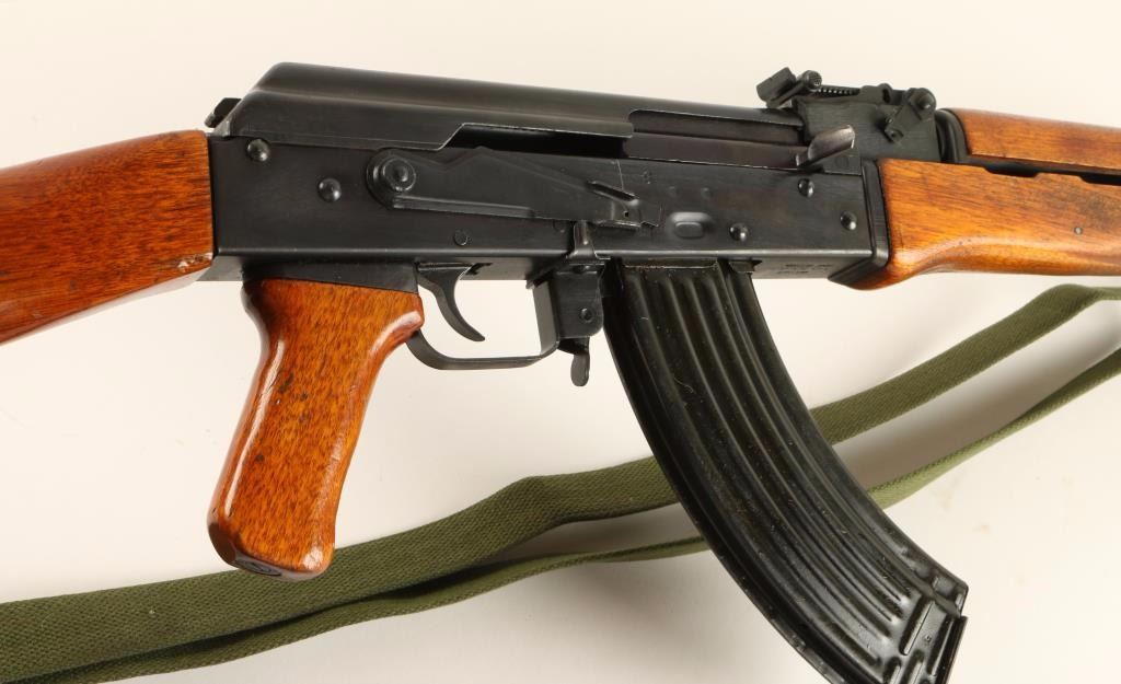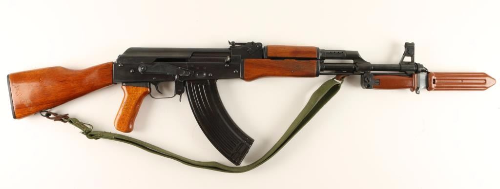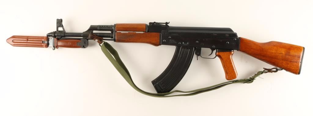 Chinese copy of the AK-47 rifle chambered in 7.62x39mm. Features a blued finish, 16.5" barrel with slant muzzle break, bayonet with sheath, shrouded front sight, adjustable rear graduated sight, 30 round magazine, cleaning rod, green canvas sling, safety selector switch, smooth trigger, and smooth hardwood stocks. Rifle retains 90% blued finish with little wear and scattered surface rust on dust cover. Action is smooth, bore is very good, are wood stocks are fine. Condition is very good. ***Modern Firearm***