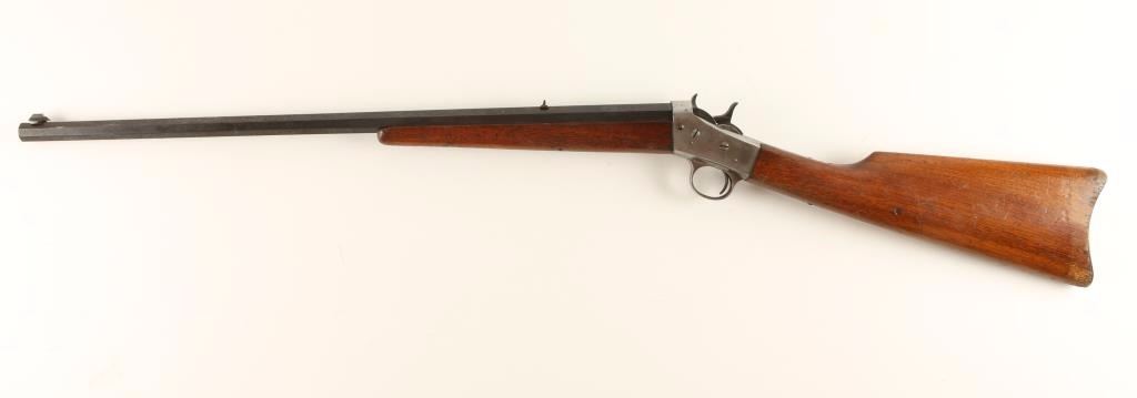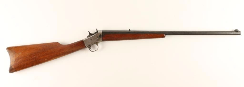 SN: J196195 Single shot take-down rolling block rifle chambered in .22 caliber, circa 1900's to 1930's. Features a blued 22.5" octagonal barrel, replaced blade front sight, fixed rear sight, checkered hammer and rolling block spurs, smooth trigger, plain forearm and straight grip walnut shoulder stock with metal buttplate. Barrel shows light scattered surface rust throughout and receiver is in the white. Action is strong, bore is fair and shows a ring, and wood stock is good with average wear from a gun of this period. Condition is very good as near antique. ***C&R Firearm*** ***Modern Firearm***