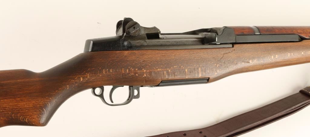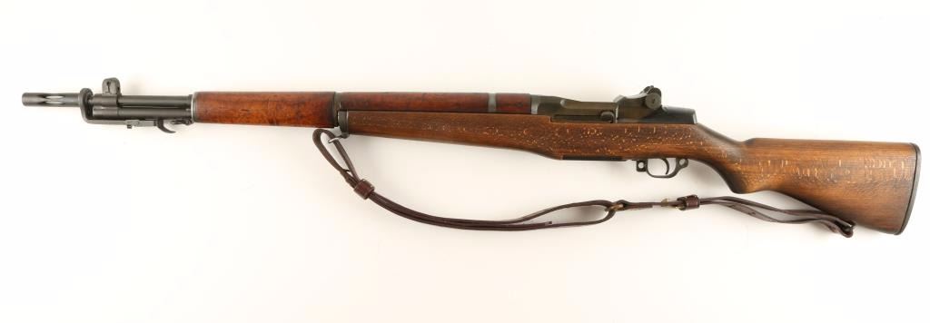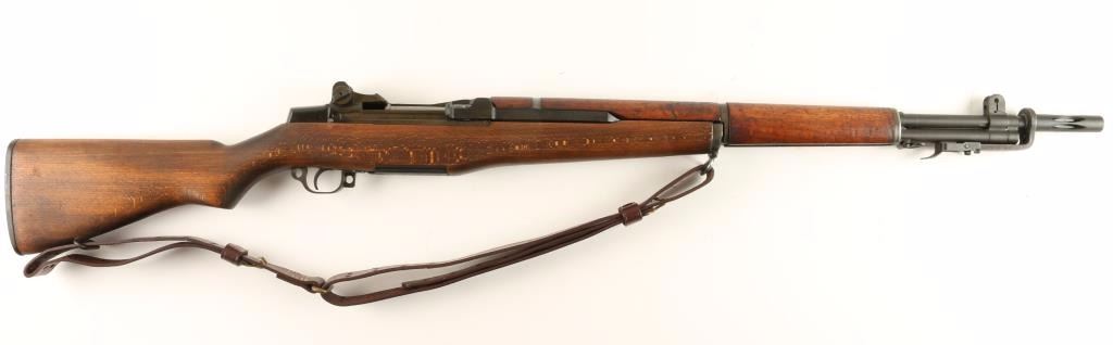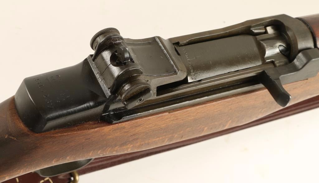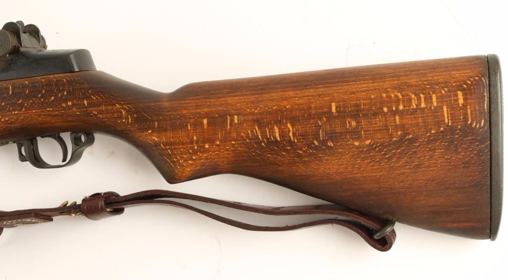 U.S. Military contracted clip-fed semi automatic service rifle chambered in .30-06 Springfield, circa 1943. Features a parkerized & blued finish, 24" barrel marked VAR 12-51, winged front sight, adjustable rear aperture sight with bar style knob, bayonet lug with flash hider attachment, brown leather sling, WRA marked bolt, WRA marked trigger assembly, checkered metal trapdoor buttplate, plain walnut handguard and shoulder stock with serial number stamped near rear sling swivel. Rifle retains 96% finish with light even wear. Action is strong, bore is excellent, and wood stocks are fine. Condition is excellent. ***C&R Firearm*** ***Modern Firearm***