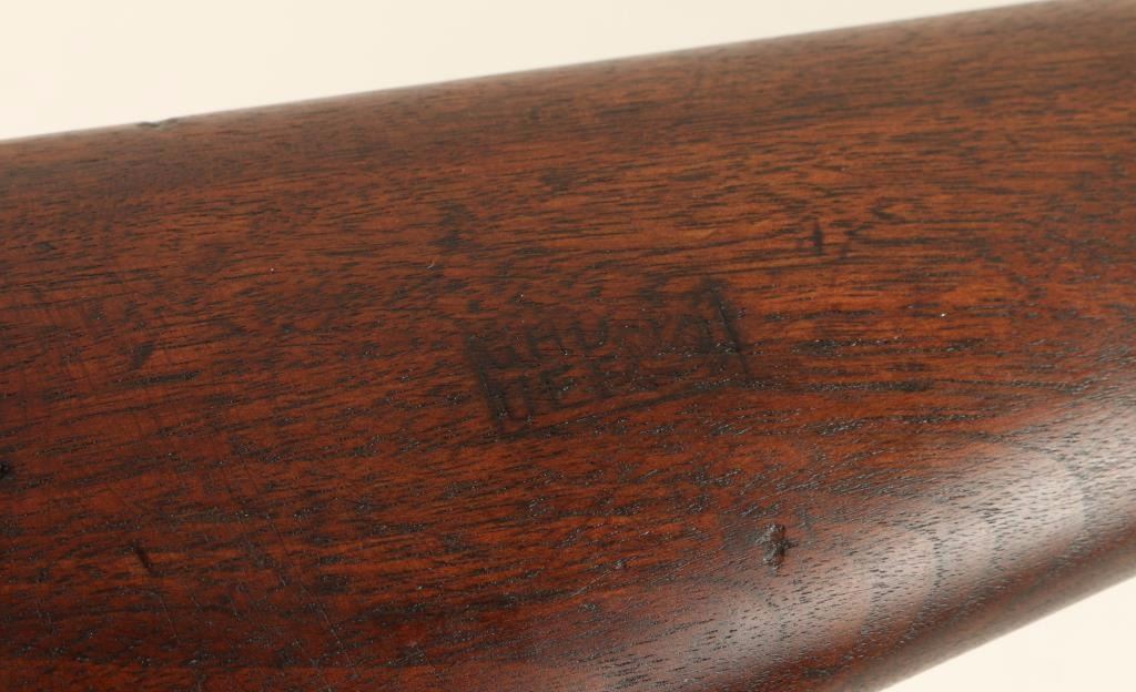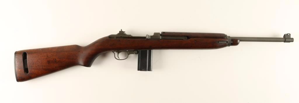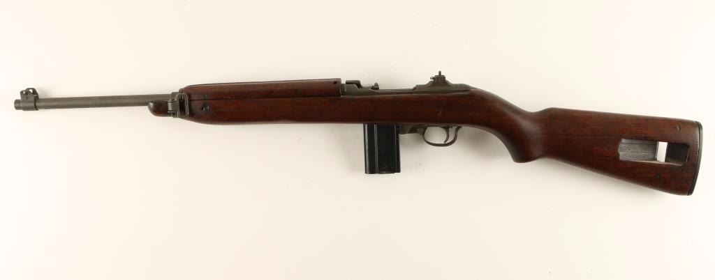 Mid-production U.S. Military contracted semi-automatic rifle chambered in .30 Carbine, circa 1944. Features a parkerized finish, 18" Underwood barrel marked 2-44 with flaming bomb, winged front sight, flip-up dual aperture rear sight, slim barrel band with sling swivel, high-wood hand guard with narrow groove, oval cut oiler slot, push button safety, 15 round magazine, smooth trigger, flat bolt, and wood pistol grip stock with "GHD / UEF (Crossed Cannons)" cartouche. Rifle retains 95% parkerized finish with light handling wear. Action is smooth, bore is excellent, and wood stock is fine with minimal dings. Condition is excellent as vintage. ***C&R Firearm*** ***Modern Firearm***