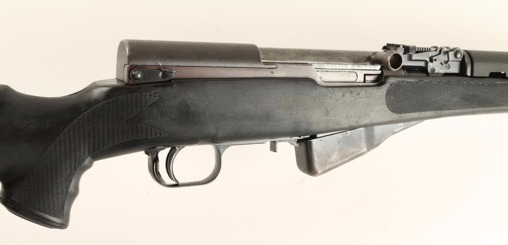Yugoslavian made copy of the Russian SKS rifle chambered in 7.62x39mm. Features a blued finish, 22" barrel with grenade launcher attachment, hooded front sight with flip up graduated sight, adjustable tangent rear sight, milled receiv0er, 10 round fixed magazine, safety switch, black synthetic handguard and checkered pistol grip shoulder stock with cheek rest & rubber recoil pad. Finish shows nice even wear with overall 80% bluing intact. Action is smooth, bore is dark with good rifling, and stocks are very good. Condition is very good. ***C&R Firearm*** ***Modern Firearm***