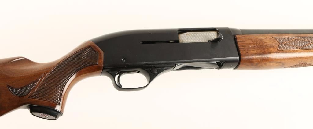 Blued steel, black alloy, semi-automatic shotgun with a 28" barrel, 2-3/4" chamber, Modified choke, wood furniture and factory recoil pad. Bluing has some scratches, rubs and dings. Bore is mirror bright. Alloy receiver/trigger group has some scratches and edge wear. Action works well. Wood has pressed checkering panels and has dings, dents and rubs. Condition is good to very good. *Modern Firearm*