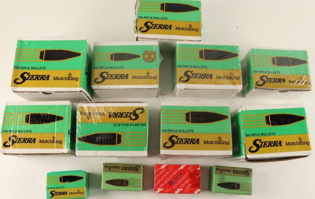 Sierra 30 Cal .308 various grains, approx 2000+ as some boxes are sealed and some open. Also included is a Sierra 7mm bullets-500 Rds.