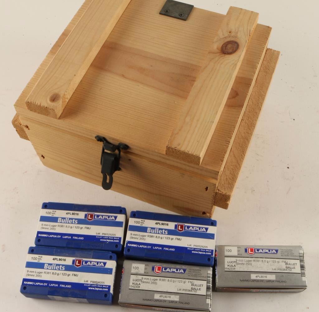 5 boxes 100rds. In wooden ammo crate,