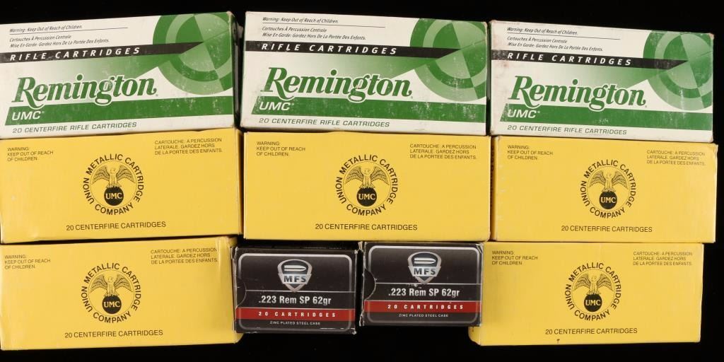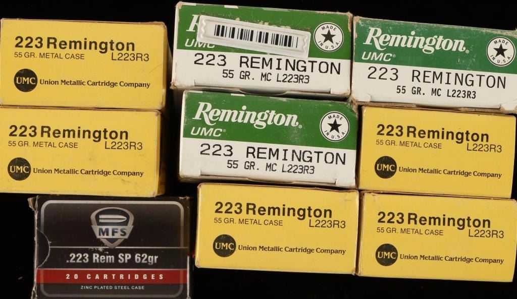 Consisting of 160 rounds of Remington UMC L223R3 55 grain full metal jacket and 40 rounds of MFS zinc-plated steel case 62 grain soft point ammunition.
