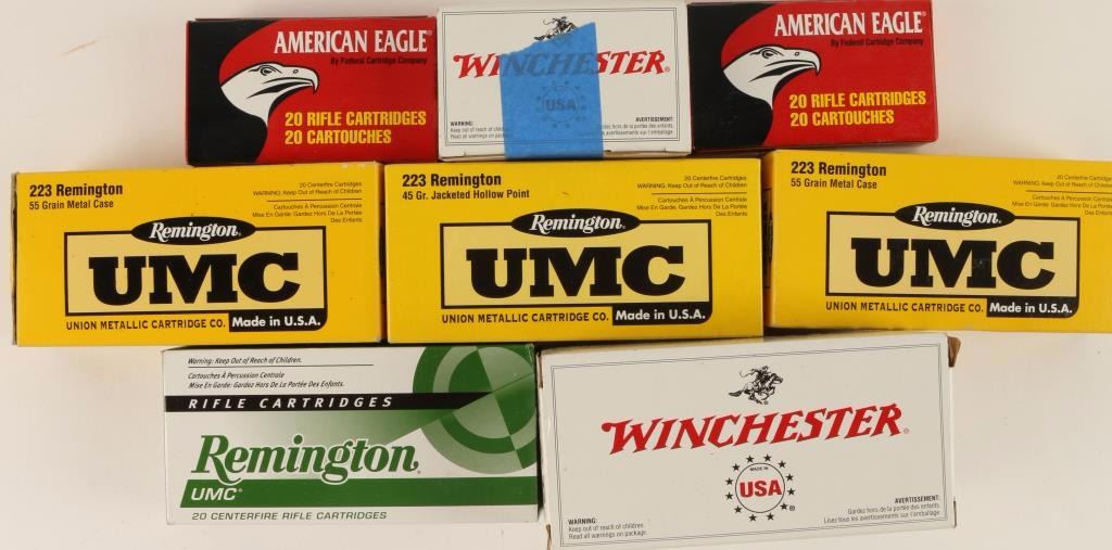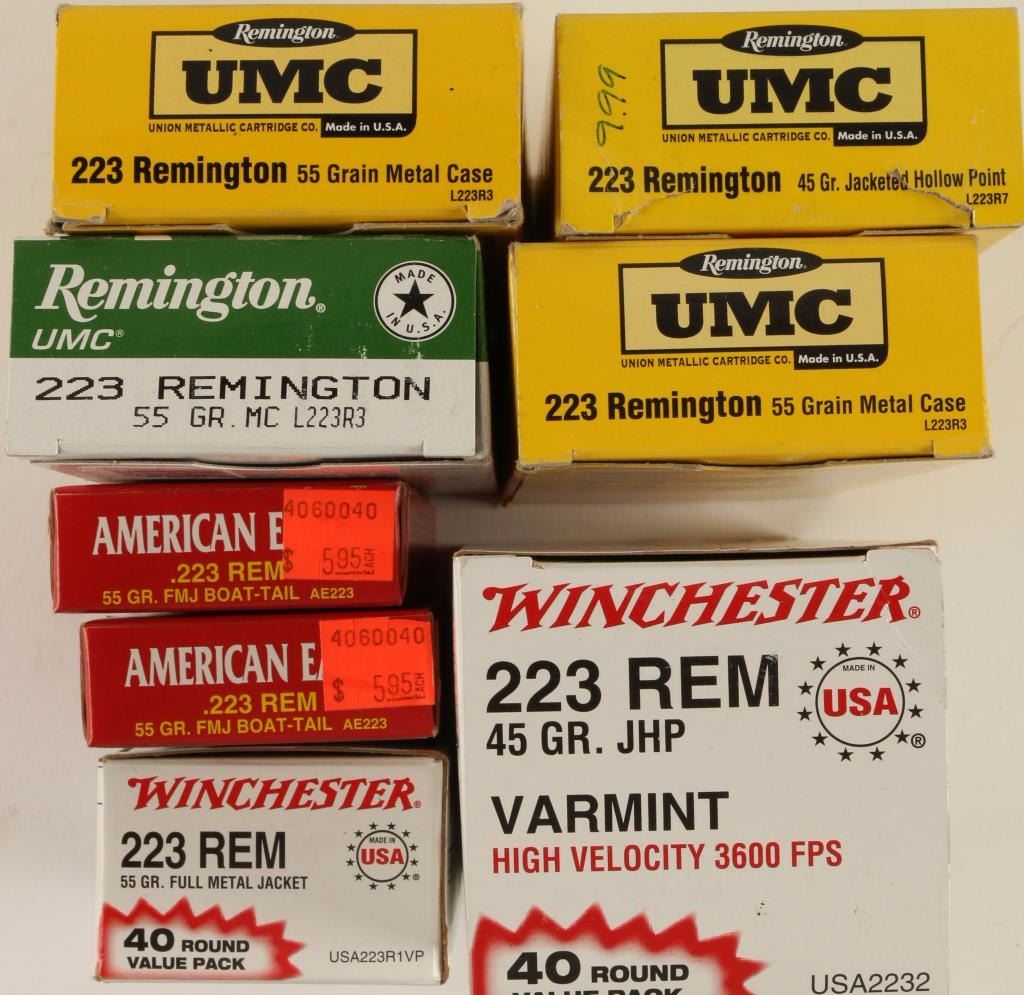 Full box of Winchester-40 Rds, 2 boxes American Eagle-40 Rds, half box of Winchester, full box of Remington 20 Rds, 3 full boxes of Remington UMC.