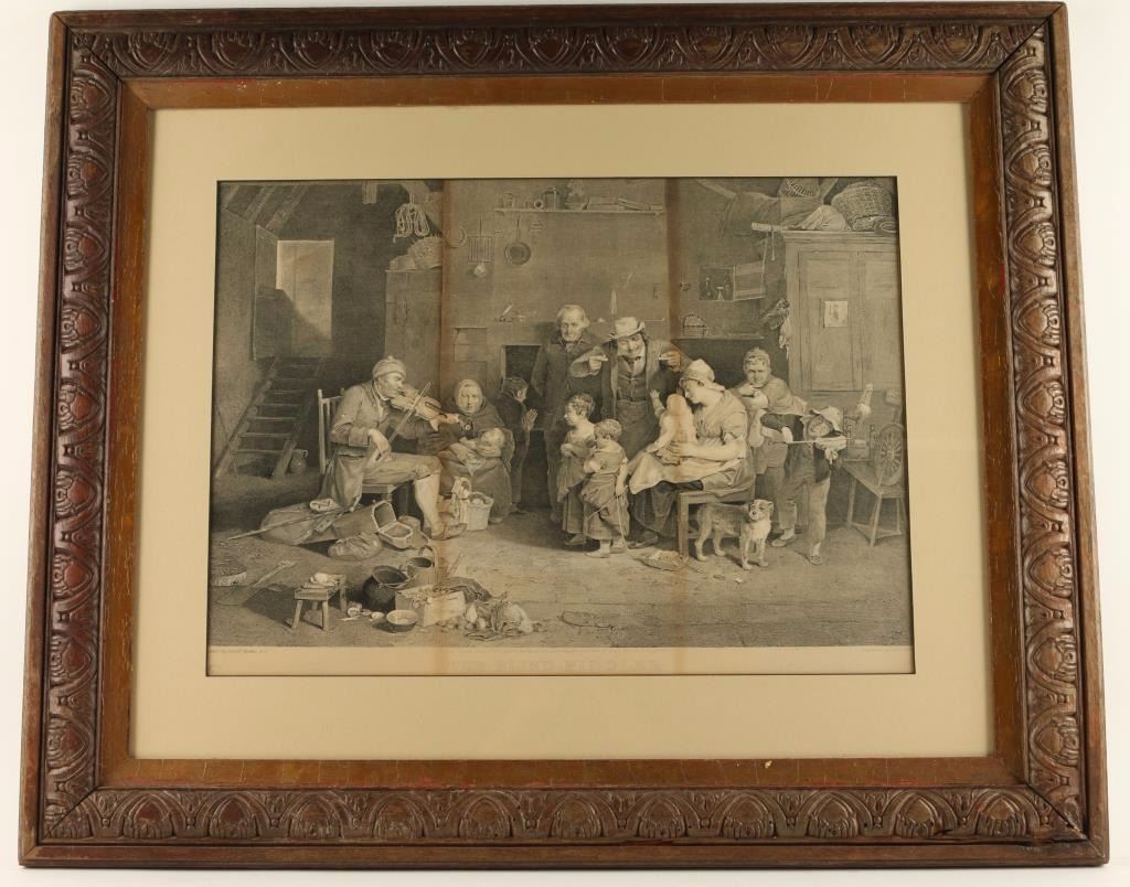 "The Blind Fiddler", 'London published January 6, 1877 by the London Fine Art Association by Kind permission of Henry Graves'. Original frame, has two lines in center of etching due to light damage. White mat, image measures 21 1/2"x15 3/4".