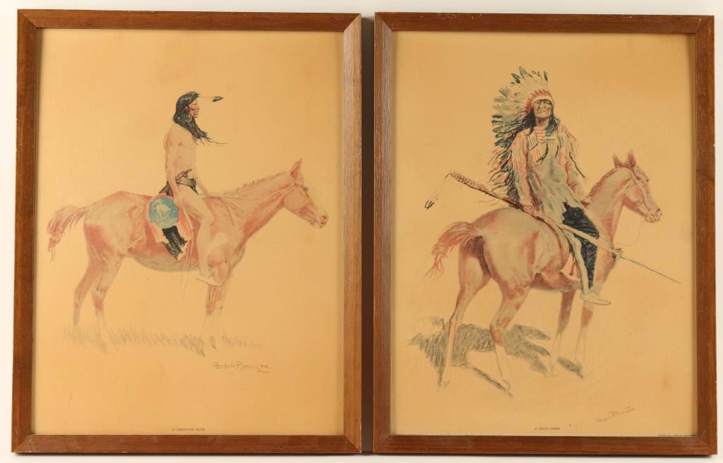 From the Frederic Remington book "The Sioux Chief" and "The Cheyenne Buck". 12"x15" both in wood frames.