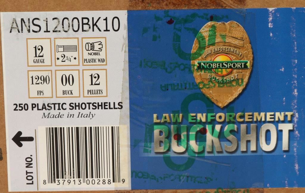 Consisting of eighteen 10 round boxes of Nobel Sport Ilalia Law Enforcement Buckshot 2 3/4" 00 shot 12 pellet, shells.