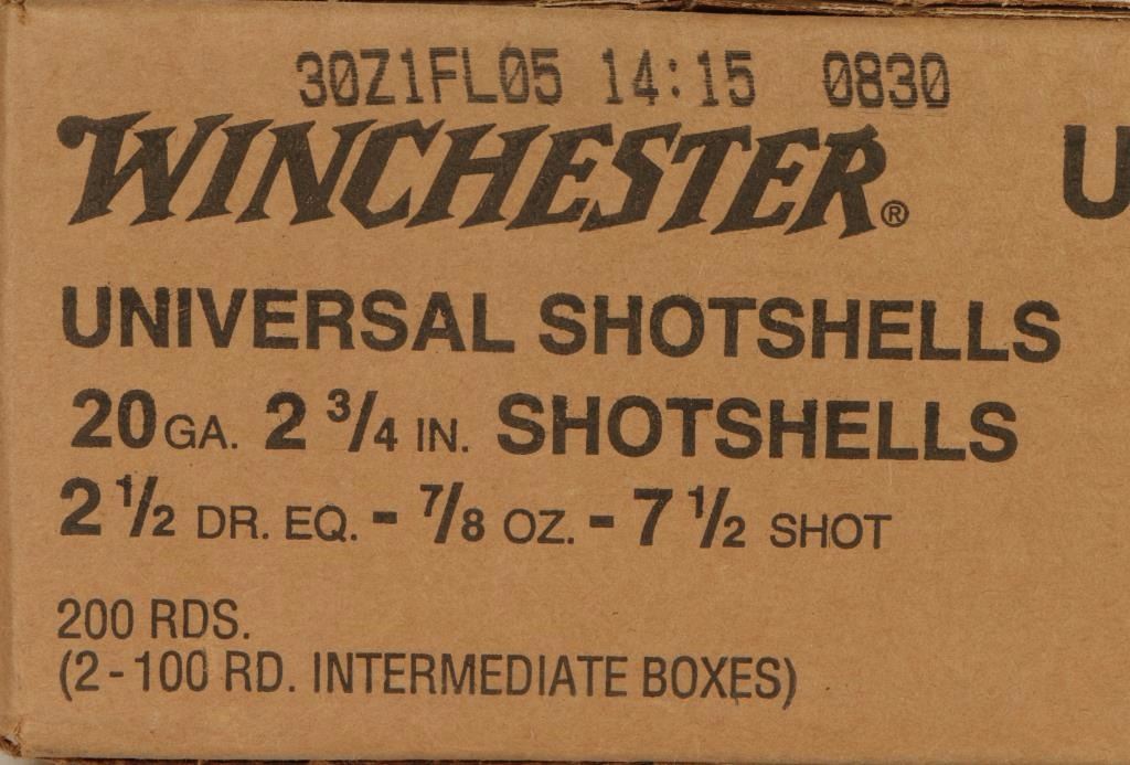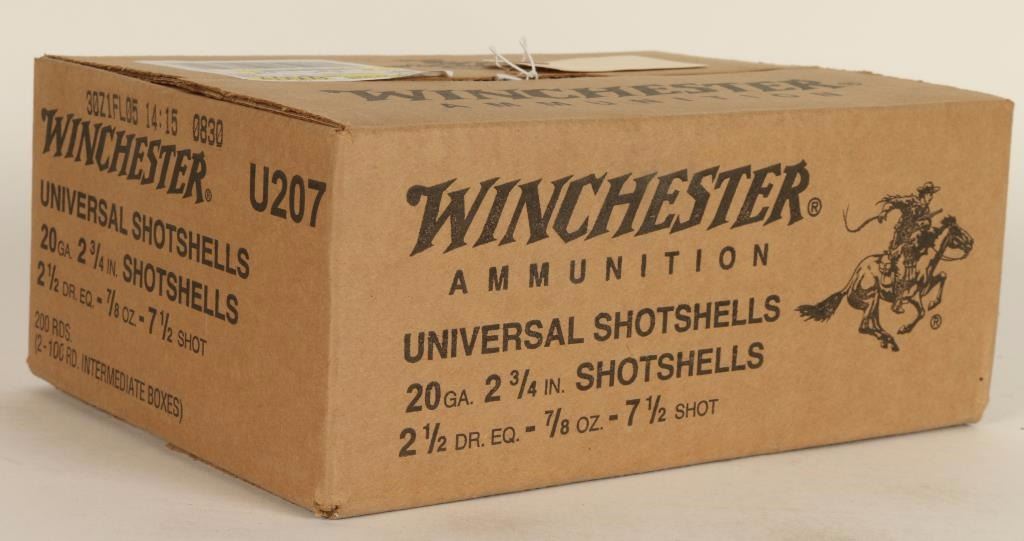 Consisting of one full case of 200 Winchester Universal 2 3/4" 7/8 ounce 7 1/2 shot shells.