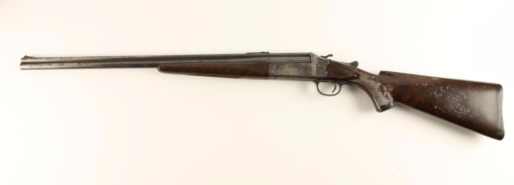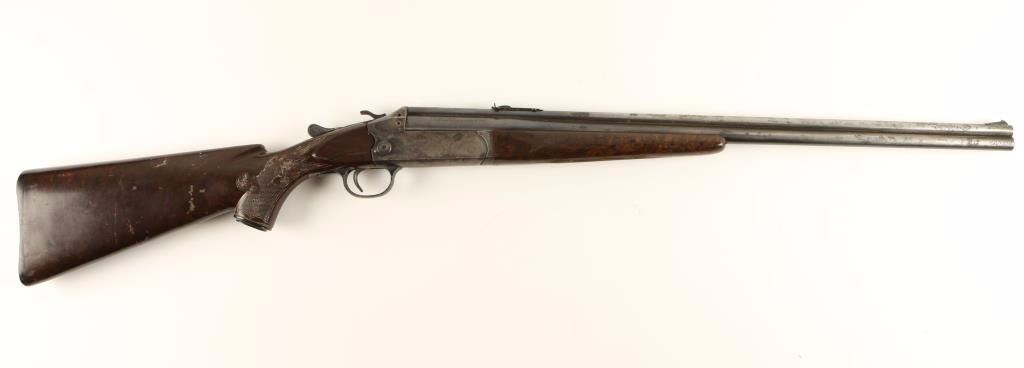 Early double barrel over & under combination shotgun/rifle chambered in .22 Long Rifle and for 3" .410 shells, circa 1950's. Features blued 24" barrels, ramped front sight, adjustable rear sporting sight, case hardened receiver with circular barrel selector switch, serrated hammer, checkered top lever, imitation checkered burl wood plastic forend and pistol grip shoulder stock with large threaded hole in buttplate. Barrels shows areas of pitting with heavy cleaning around them and surface rust on the underside of the barrels. Receiver shows good colors with pitting and is lightly scratched R.C.A.F. with an arrow on the right side. Action functions well, bores are dirty but will likely clean easily and stocks are fair/good. Condition is fair to good. ***C&R Firearm*** ***Modern Firearm***
