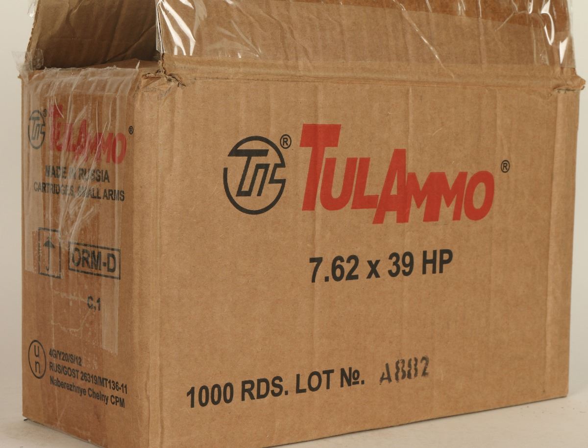 Consisting of 260 rounds of Tula steel case 124 grain hollow point and 340 rounds of Tula steel case 122 grain hollow point ammunition.