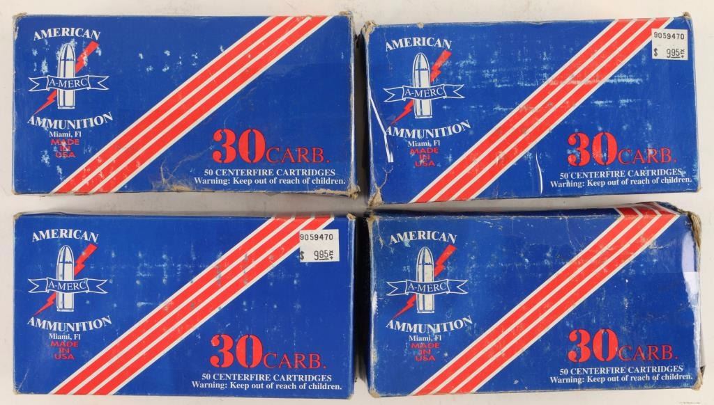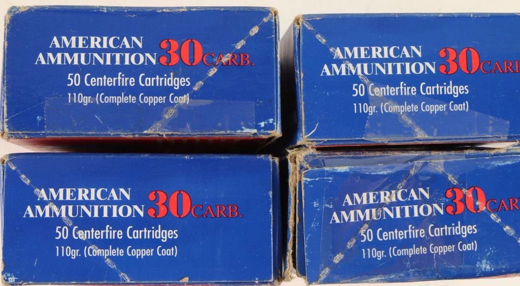Consisting of one partial and three full 50 round boxes of A-merc American Ammunition 110 grain complete-copper-coat ammunition.