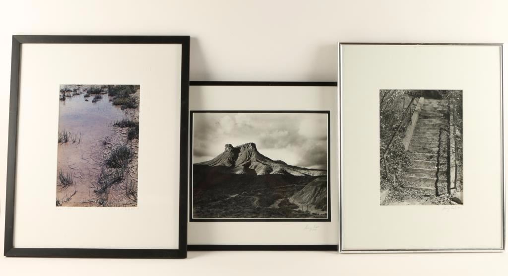 Including; "Idle Stairway" by Larry Tiede, signed on back and front, dated 2003 measures 11"x8", "Cracked Mud" by Sally Mack signed and dated on front, 12"x8", "Teapot Mountain" also by Larry Tiede, signed on front, 13"x10".