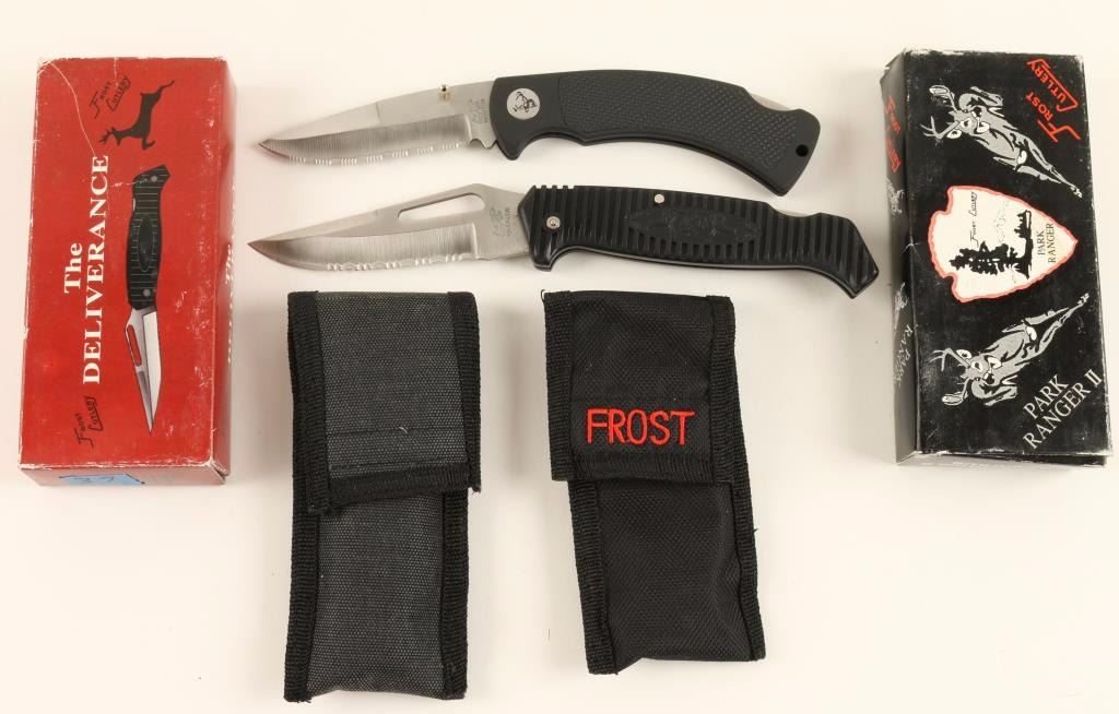 The Deliverance pocket knife and Park Ranger II. In the boxes.