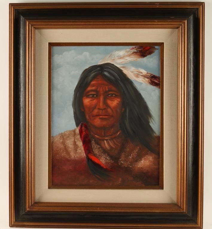 "Indian Brave" by Marcelline Nagel. Signed by artist lower right corner. In wood frame with linen insert, image measures 13 1/2"x17".
