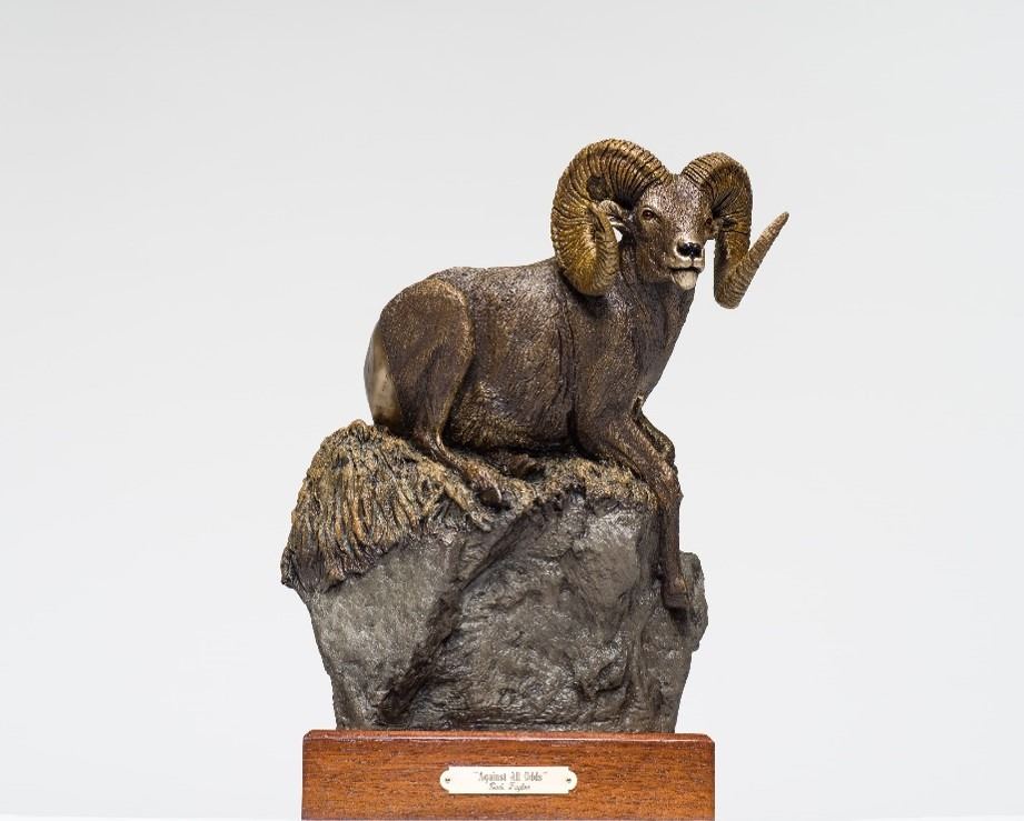 “Against All Odds” – Bronze Sculpture by Rick Taylor. This amazing 11x13" sculpture is mounted on a walnut base and is #2 of the series. Against all Odds is a tribute to the story of the new World Record BighornSheep. Rick is a wonderful conservationist and world renowned artist. In the spring of 2015, the Boone and Crockett Club officially measured and recognized a new world record Rocky Mountain bighorn sheep. The story of Ram 706 booklet is also included with sleeve. DEF wishes to thank Rick Taylor for this donation. Rick Taylor, 250-353-7735, rick@ricktaylor.com, www.ricktaylor.com.