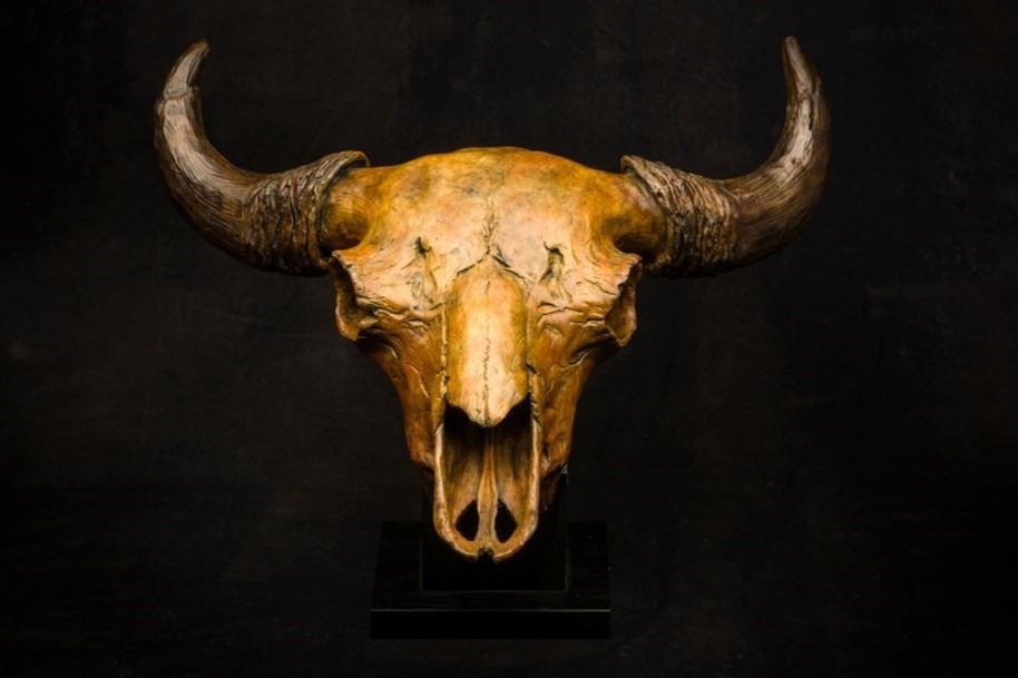 Lot 29 “Red Thunder” ½ Life-size Bison Skull Bronze with Stand by Dick Idol