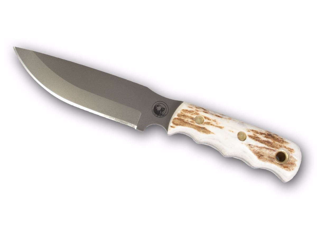 This knife is designed for rugged bush camp field-dressing and cook shack duties. The handle is made from stag- timeless, beautiful material from American elk.