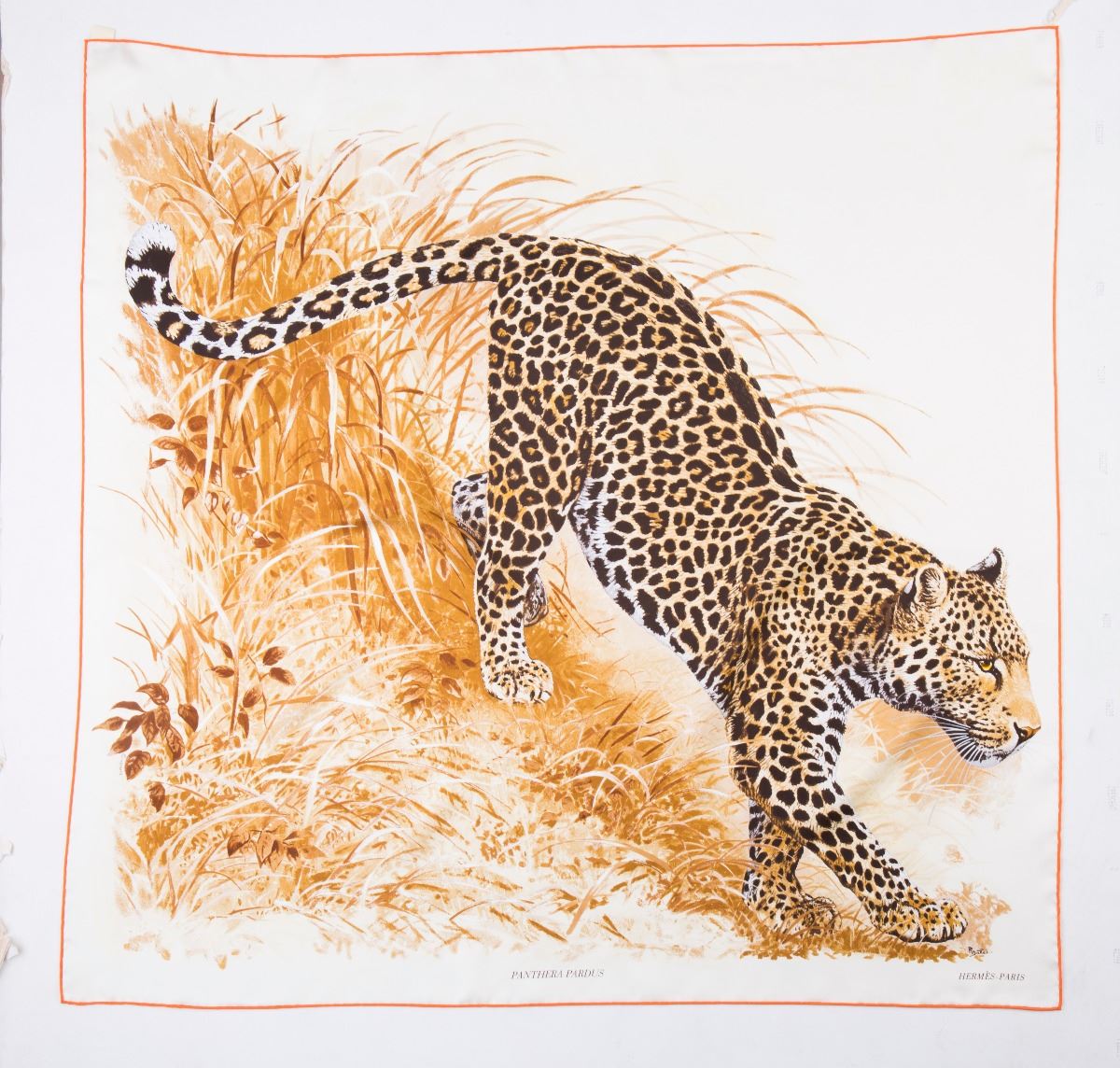 Throughout this year, Hermès is paying tribute to the incomparable animal painter Robert Dallet, a naturalist and artist who devoted his life to the study and protection of animals. In particular, Dallet declared a special fascination, and boundless admiration, for the big cats, producing over a hundred plates cataloging every known species, including Panthera pardus, seen here.