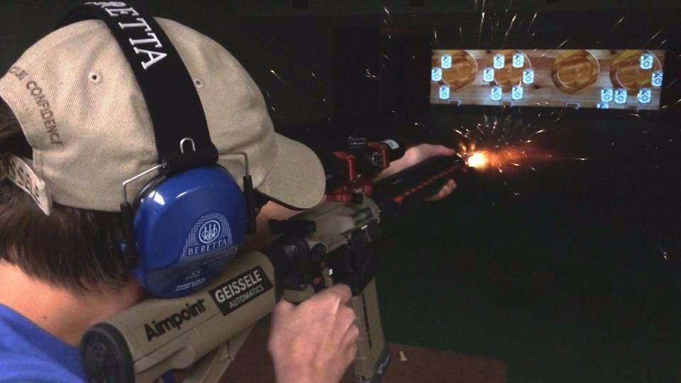 AR-15 Carbine Live-Fire Cinema Training Course for 2 individuals with 2 Aimpoint Patrol Rifle Optic Red Dot sights at the American Sportsman Shooting Center in Dallas, Texas.