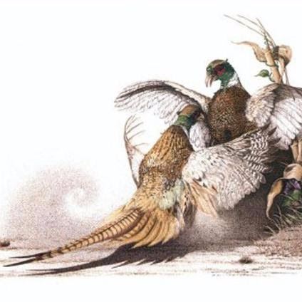 Lot 5 LA-5 SHERRY STEELE LITHO PRINT FLASHPOINT-PHEASANTS IMAGE 21.5X15