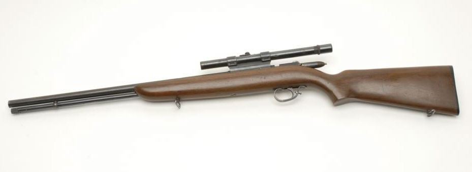 Remington Sportsmaster 512 Bolt Action Rifle, .22 S,L,LR, 20” barrel, blue finish, pistol grip wood stock, NSNV. This rifle remains in good condition showing a brown patina on the barrel with blue remaining on the receiver and magazine tube. Thebarrel has been reduced and a Weaver G4 scope with mount has been added. The stock remains in good condition showing dings, mars, and scratches from use and carry. The name Newton has been marked on the right side of the barrel. The action is crispand the bore is very good. (Modern) Est.: $75-$150