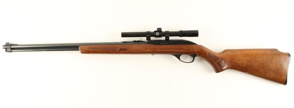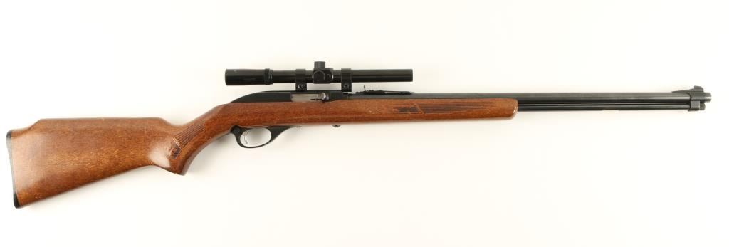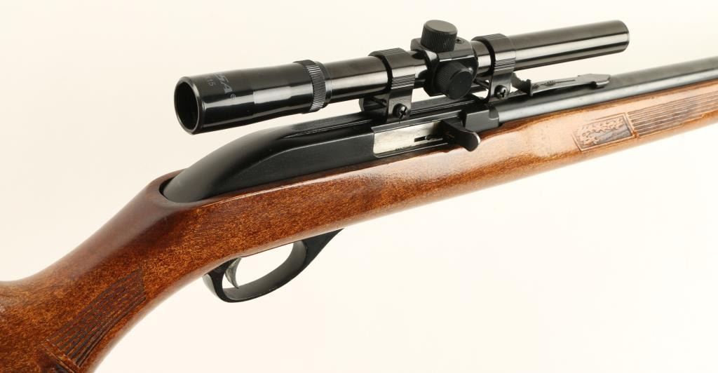 Glenfield Model 60 (by Marlin) semi-automatic rifle, .22LR caliber, 22” round barrel, S/N 26407741, blued finish, wood stock and mounted with a BSA R4X15 scope displaying crisp optics. This gun is in overall very good condition withthe majority of its original blue finish remaining, very good bore, action, markings and wood. (C&R). Est.: $80-$160.