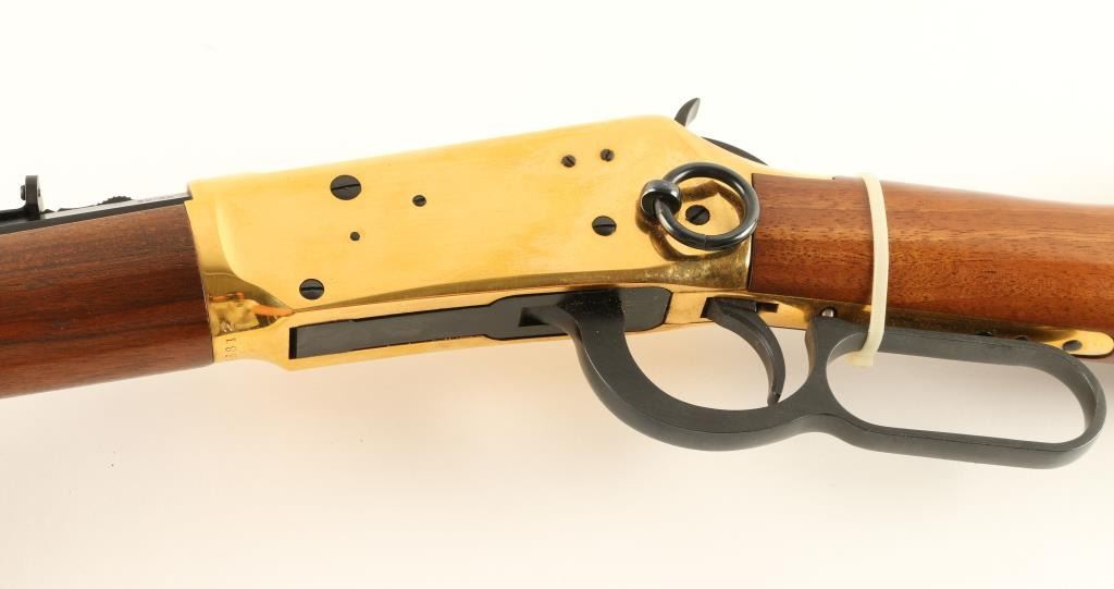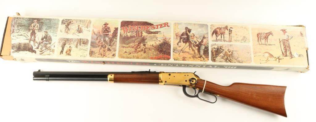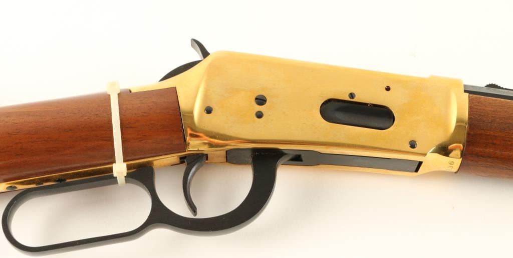 Winchester 94 SRC Centennial ’66 Lever Action Rifle, .30-.30, 20” barrel, walnut wood stock, blue and gold finish, S/N 96812. This rifle remains in overall excellent condition with 98% finish remaining. The frame and wood has somelight scratches and the bore is excellent. Little to no use. (C&R). Est.: $400-$800