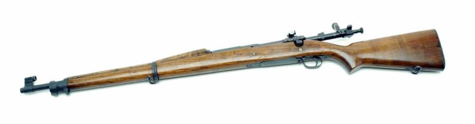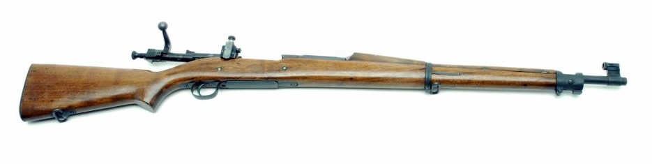 U.S. Model 1903 by Remington bolt action rifle set up in National Match style with Lyman adjustable receiver mounted rear sight and hooded front sight, milled steel butt plate, serrated trigger, .30-06 caliber, 24.5” Remington barrel dated 5-42, S/N 3129840, military finish, wood stock in overall very good condition displaying a fine bore, crisp action, sharp markings and better-than-standard wood stock that is very good as re-finished. This rifle should be furtherresearched as The Springfield Research Service may have additional data on its history. (C&R). Est.: $700-$1,400.