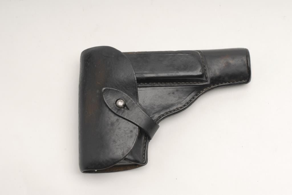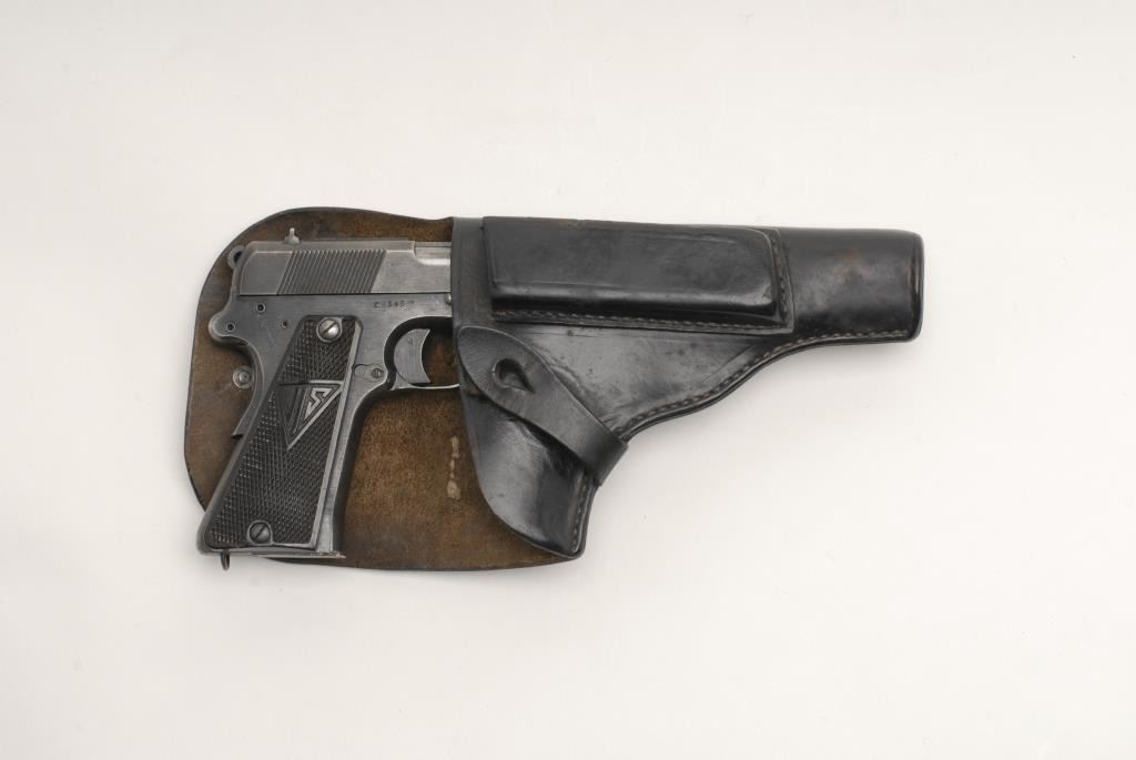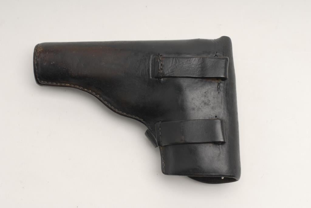 Radom VIS Model 35 semi-automatic pistol, 9mm caliber, 4.5” barrel, S/N C8546, in overall fine condition displaying the majority of its original finish with high point wear; fine bore, crisp action, sharp markings and fine grips.Accompanied by a black leather flap holster in overall good to very good un-cleaned condition. (C&R). Est.: $750-$1,500.