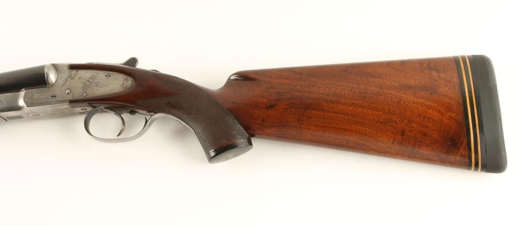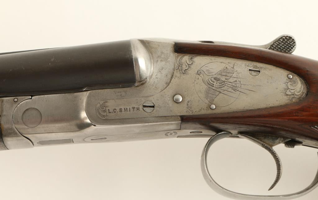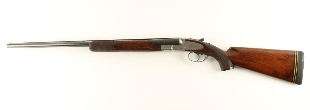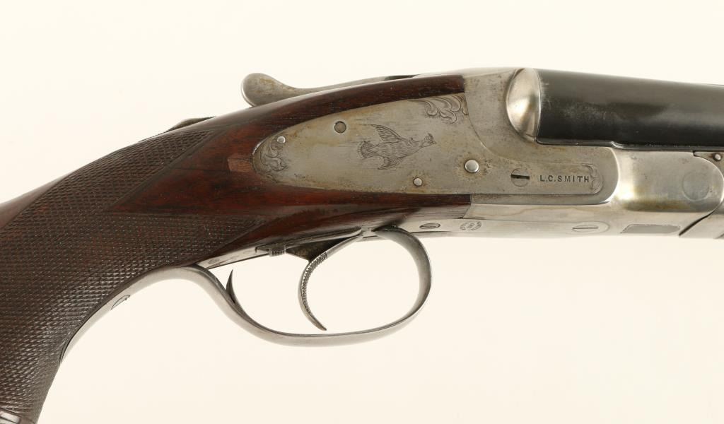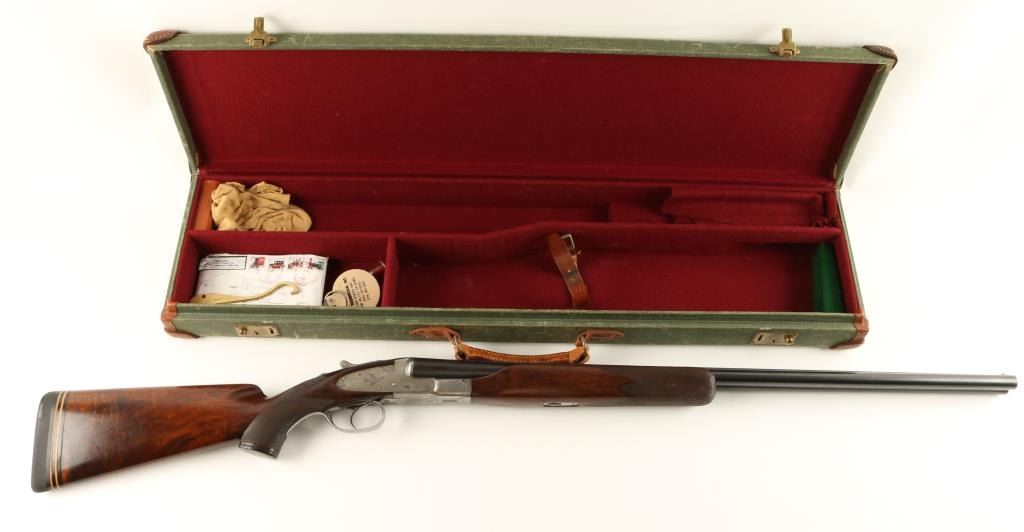 L.C. Smith Skeet Special SxS shotgun, 20 gauge, 28” ventilated rib barrels, S/N FWE148415, blued finish, engraved receiver, Hunter One Trigger, checkered wood stocks with added Decelerator hard rubber butt pad. This shotgun is in overall verygood to fine condition displaying the majority of its blued finish on the barrel assembly; the bores are fine, the actions good and the wood stocks are very good to fine showing normal handling and wear. The gun is contained in a luggage stylelined compartment hard case that includes an L.C. Smith marked Special tool for cocking the hammers of the lock plate and keys to the locks of the case. (Modern). Est.: $1,200-$1,800.