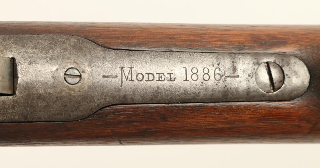 Winchester Model 1886 lever action rifle, .40-82 W.C.F. caliber, 26” octagon barrel, S/N 30018, blued and case hardened finish, wood stocks in overall good to very good condition showing a dark patina to metal surfaces, good bore, crispaction, good markings and overall very good wood with a couple old mars scattered on the forend. (Antique). Est.: $1,400-$2,800.