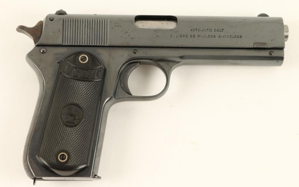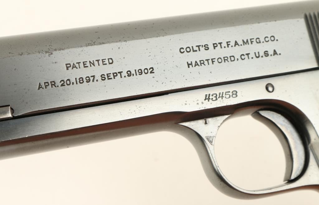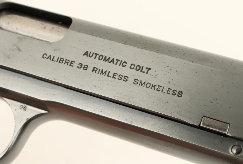 Lot 120 Colt Model 1902 Pocket semi-automatic pistol, .38 caliber, 4.5” barrel, S/N 43458, blued finish, c