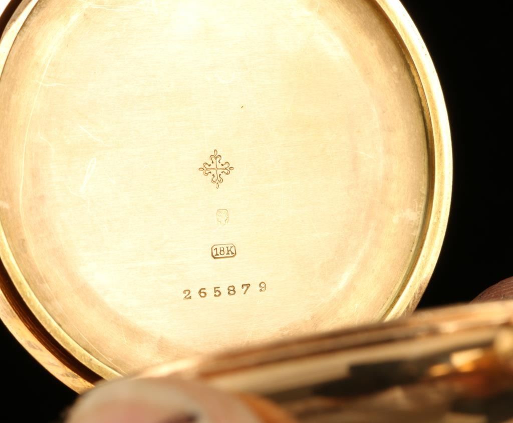 Lot 139 Outstanding 18K gold open face pocket watch by Patek Philippe with fine face, approximately 2.25”