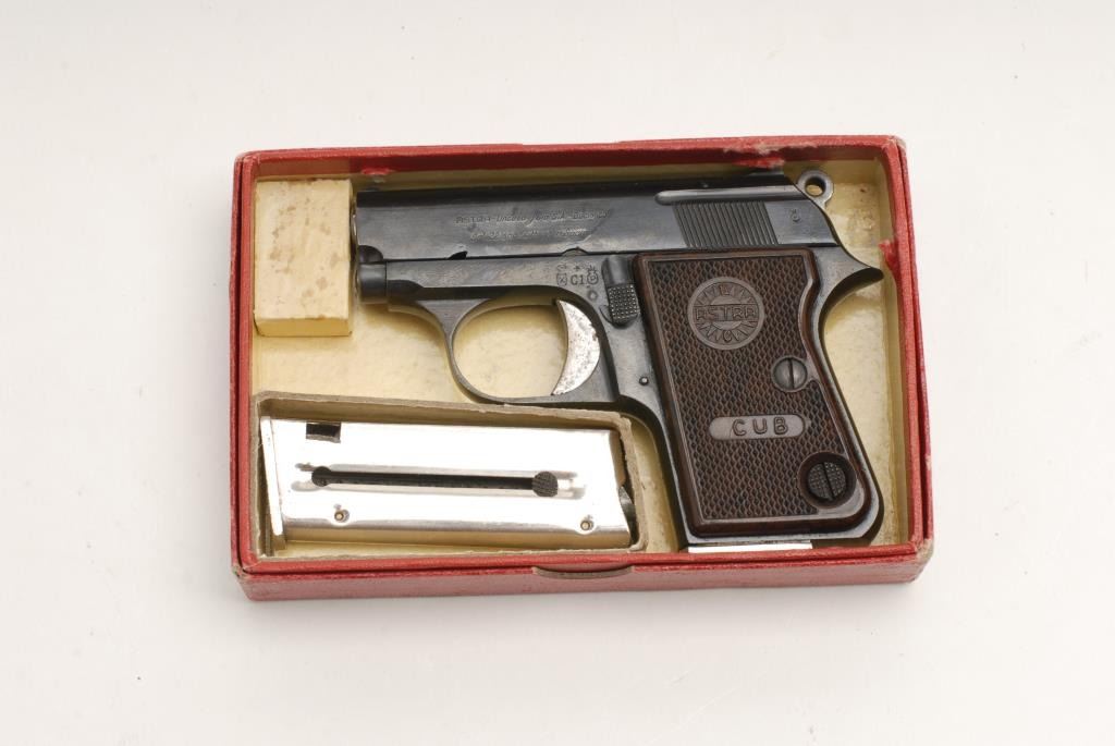 Lot 150 Astra Cub Model semi-automatic pistol, .22 Short cal., serial #101787. The pistol is in very good