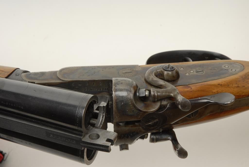 Vincen 20 Bernardelli Double Barrel Exposed Hammer shotgun in 20GA 2 ¾” with Greener cross bolt lock and modern MFG., S/N 64912. This gun shows 27 ½” barrels, double triggers, and standard extractors, raised and matted non-vent rib. Measures 13 ¼” to the end of the wood and 14” to the end of the pad. In fine to excellent condition. Marked “Acciaio Speciale-Extra”. Most likely made for European use where hammer guns are still in favor. Est.: $2,000-$4,000