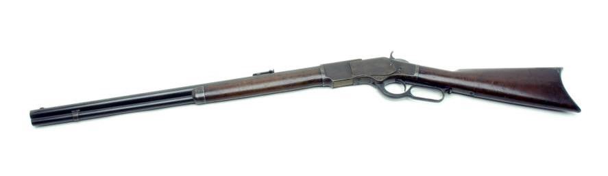 Lot 192 Winchester Model 1873 lever action rifle, .44 caliber, 24” round barrel, thumbprint dust cover, S/