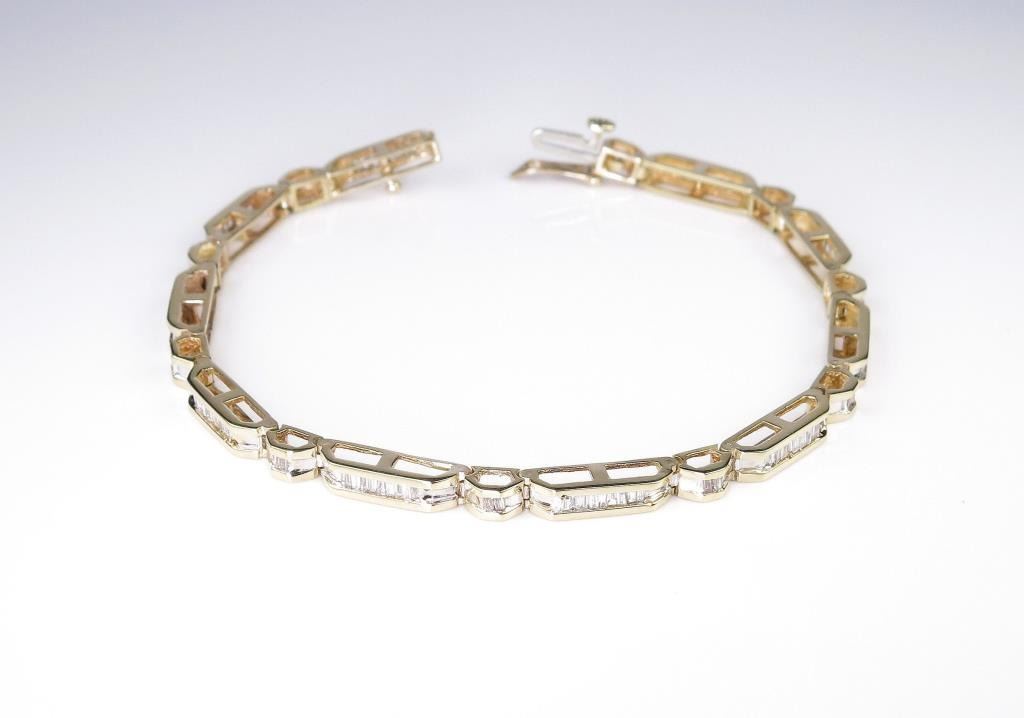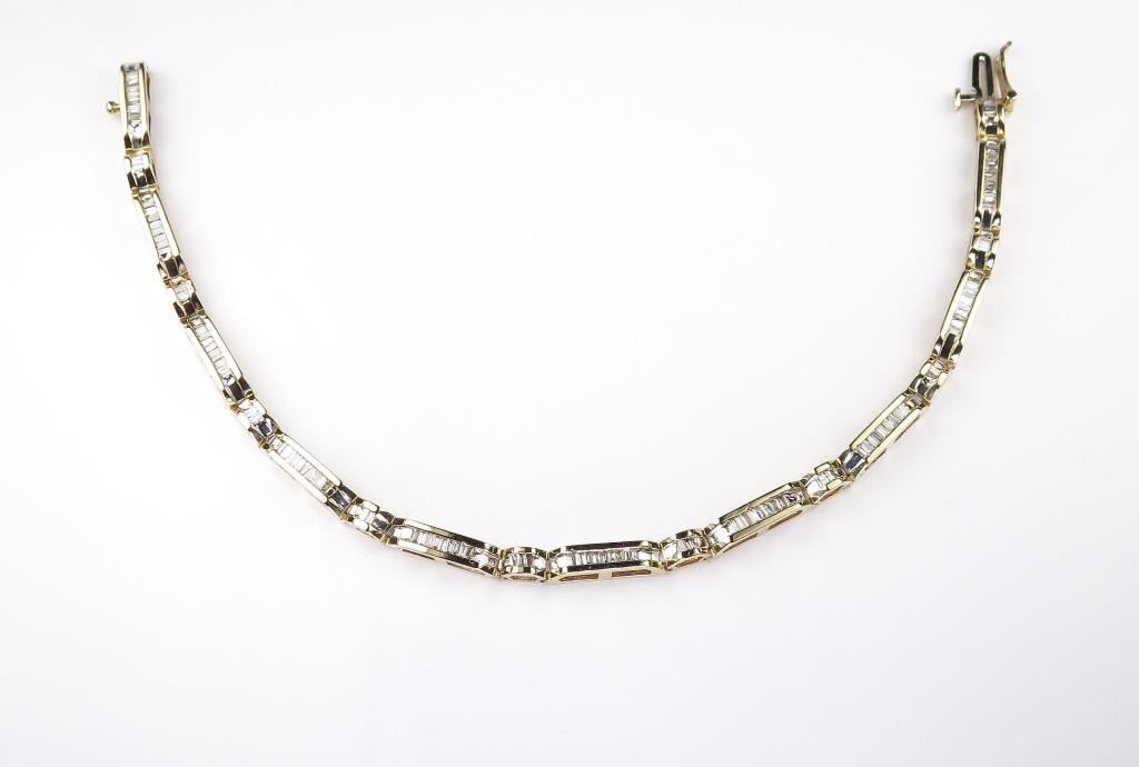 Brilliant ladies diamond bracelet channel set with over ninety baguette cut diamonds weighing approx. 2.00-2.50 carats of H-I colors and VS/SI clarity set in 10 karat yellow gold setting. Retail $2,000- $3,000 Estimates $1,500- $2,000