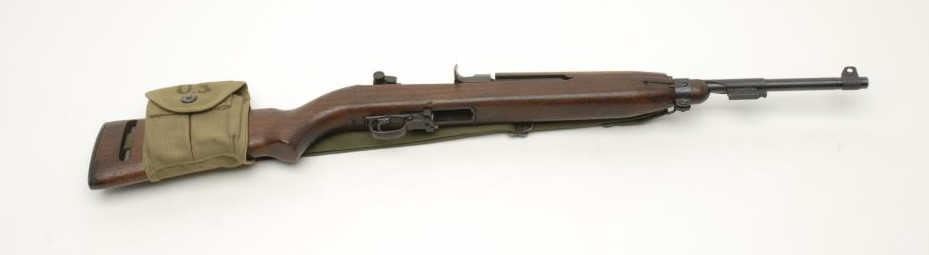 U.S. M1 semi-automatic carbine by National Postal Meter, .30 caliber, 18” unmarked barrel with bayonet lug, S/N 1475363; carbine was re-built by Underwood (ca. 1948-49), excellent bore, crisp action, good markings and overall very good stockshowing original “NPM/FJA” cartouche with the additional “.U.” for the rebuild; with sling, oiler and Type I magazine pouch on stock (empty). (C&R). Est.: $600-$1,200.