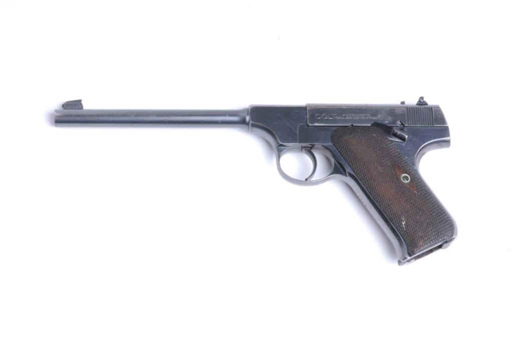 Lot 328 Colt Pre-woodsman Pistol, #19801, .22 LR, bore is fair may improve with cleaning. 6 ¾” barrel leng