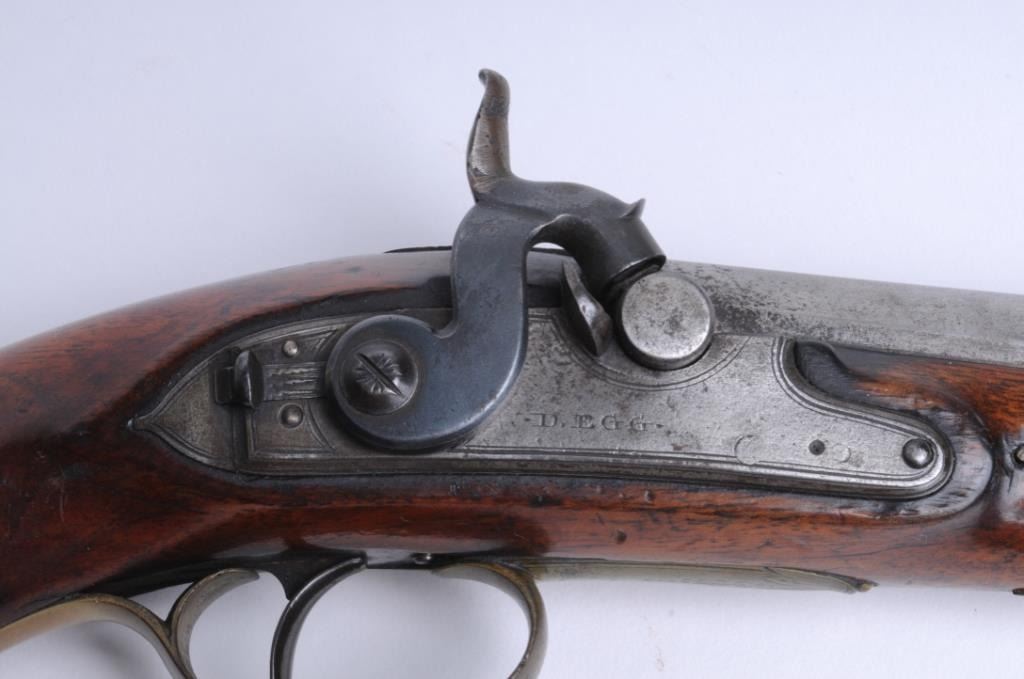 Lot 348 D. Egg London marked pistol with mask butt converted from flintlock to percussion. D. Egg was one