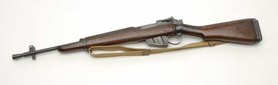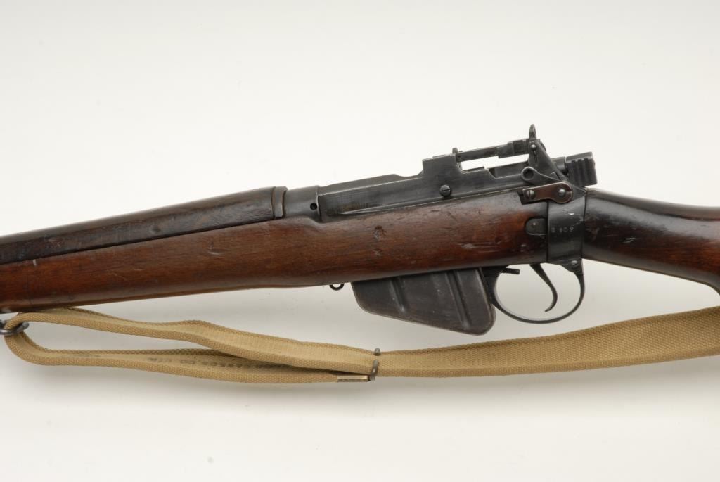 British No. 5 MK I Jungle bolt action carbine, .303 British caliber, import-marked, S/N G903, military finish, wood stock, woven sling, in overall good to very good condition with a good bore, very good action, good markings and woodstock showing scattered mars and scratches from carry and storage. (C&R). Est.: $300-$600.