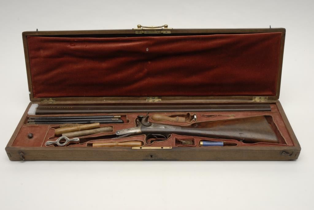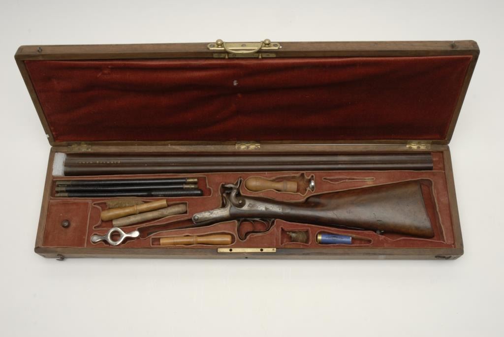 Lot 405 Cased 16GA pinfire by Bernard signed in gold on the barrels. In good to very good condition. Norma