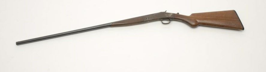 Harrington & Richardson Single Shot Shotgun, 28 GA, 28” barrel, blue finish, wood pistol grips butt stock and fore end, S/N 3080. This shotgun remains in good condition showing majority of its blue finish just starting to go brown along withsome pinprick pitting. The stock show some loss of finish along with some dings, mars and scratches. There is a crack in the stock at the top and bottom where the wood meets the metal. The action is crisp and the bore is good with pinprickpitting. (C&R) Est.: $200-$400