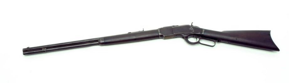 Winchester Model 1873 lever action rifle, ..32 W.C.F. caliber, 24” octagon barrel, S/N 290775B, in overall good condition with a dark patina to metal surfaces, replaced dust cover, good action and markings, rough bore, overall good wood withan old “A” carved into the right side of the butt stock. (Antique). Est.: $900-$1,800.