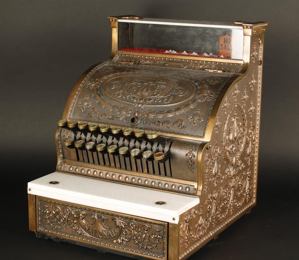 Lot 534 Old brass National Cash Register; approximately 17” x 13” x 15” overall and in good condition; k