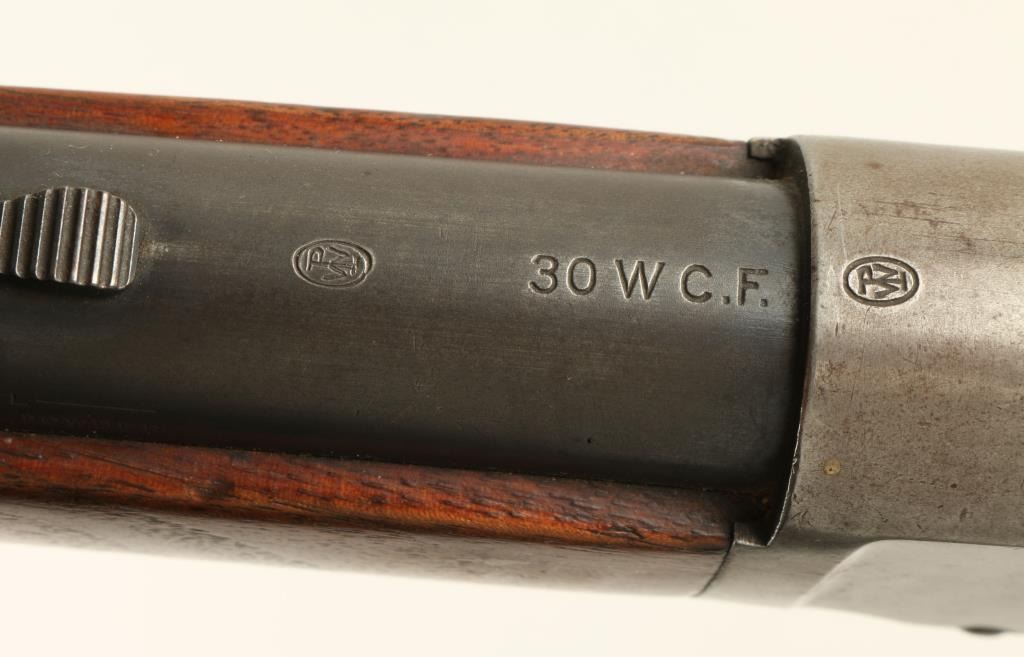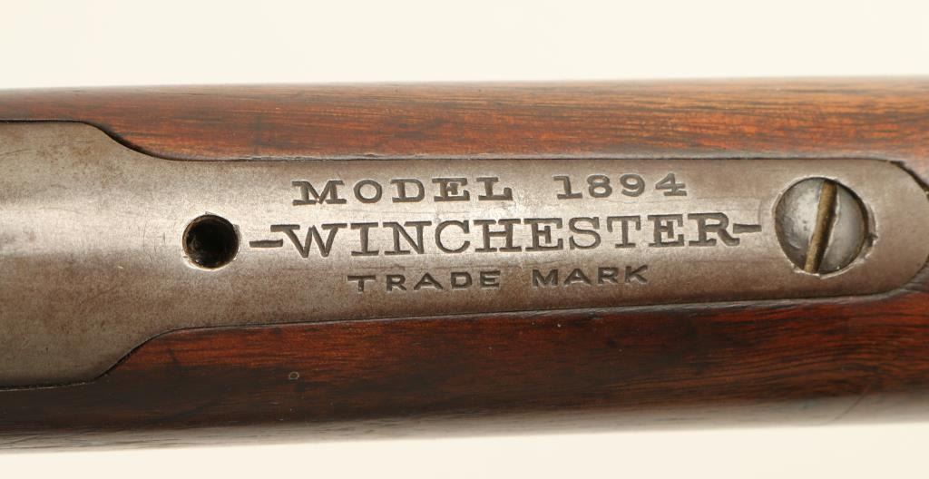 Winchester Model 1894 lever action rifle, .30 W.C.F. caliber, 26” round barrel, S/N 324215, blued finish, wood stocks in overall very good + condition showing the majority of its original muted blue finish on the barrel assembly; crispaction and markings, very good + bore and wood stocks. (C&R). Est.: $800-$1,600.